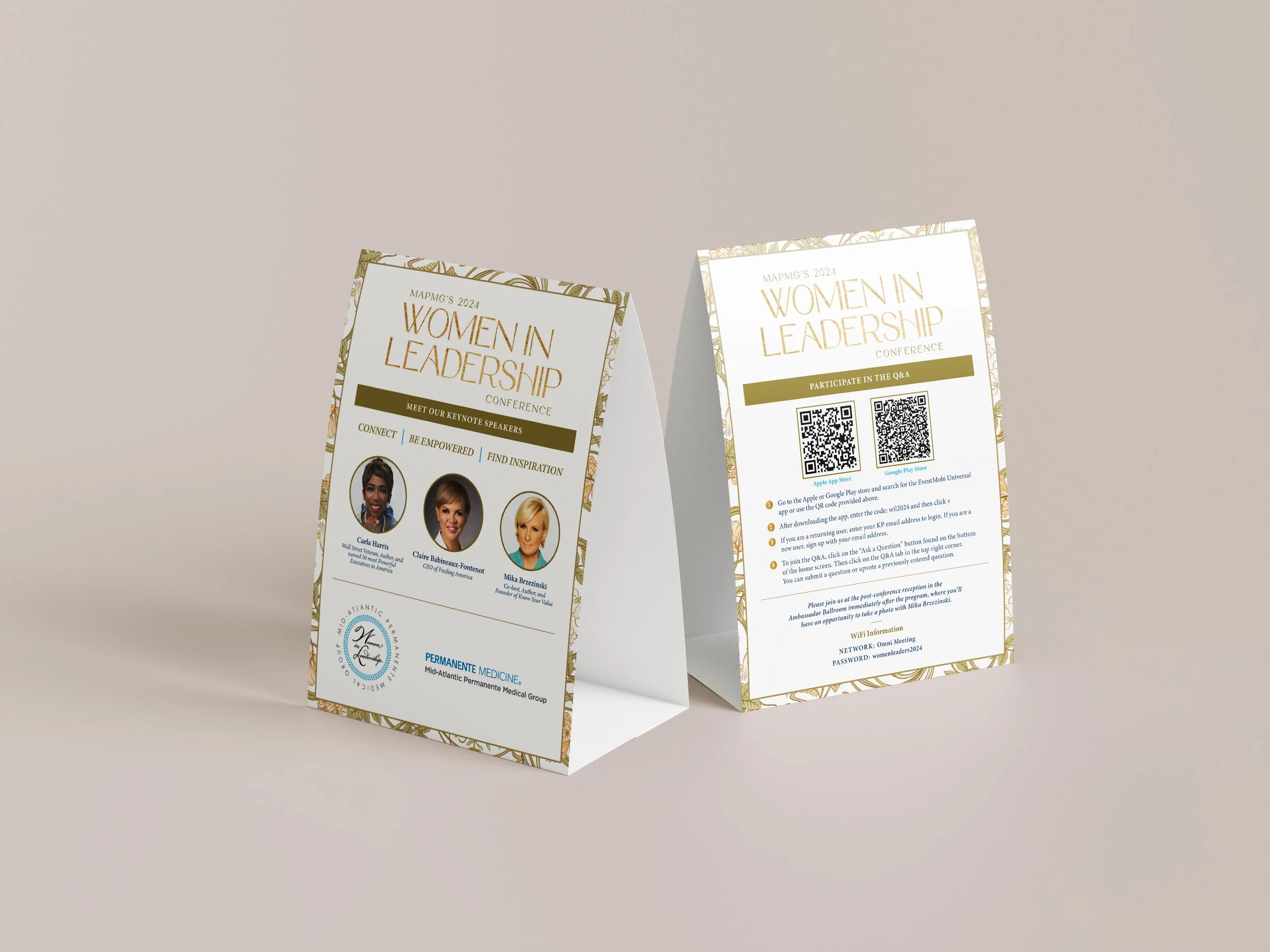 Developed a cohesive suite of print materials for Kaiser Permanente’s Women in Leadership event—an experience designed to celebrate, connect, and empower female leaders.